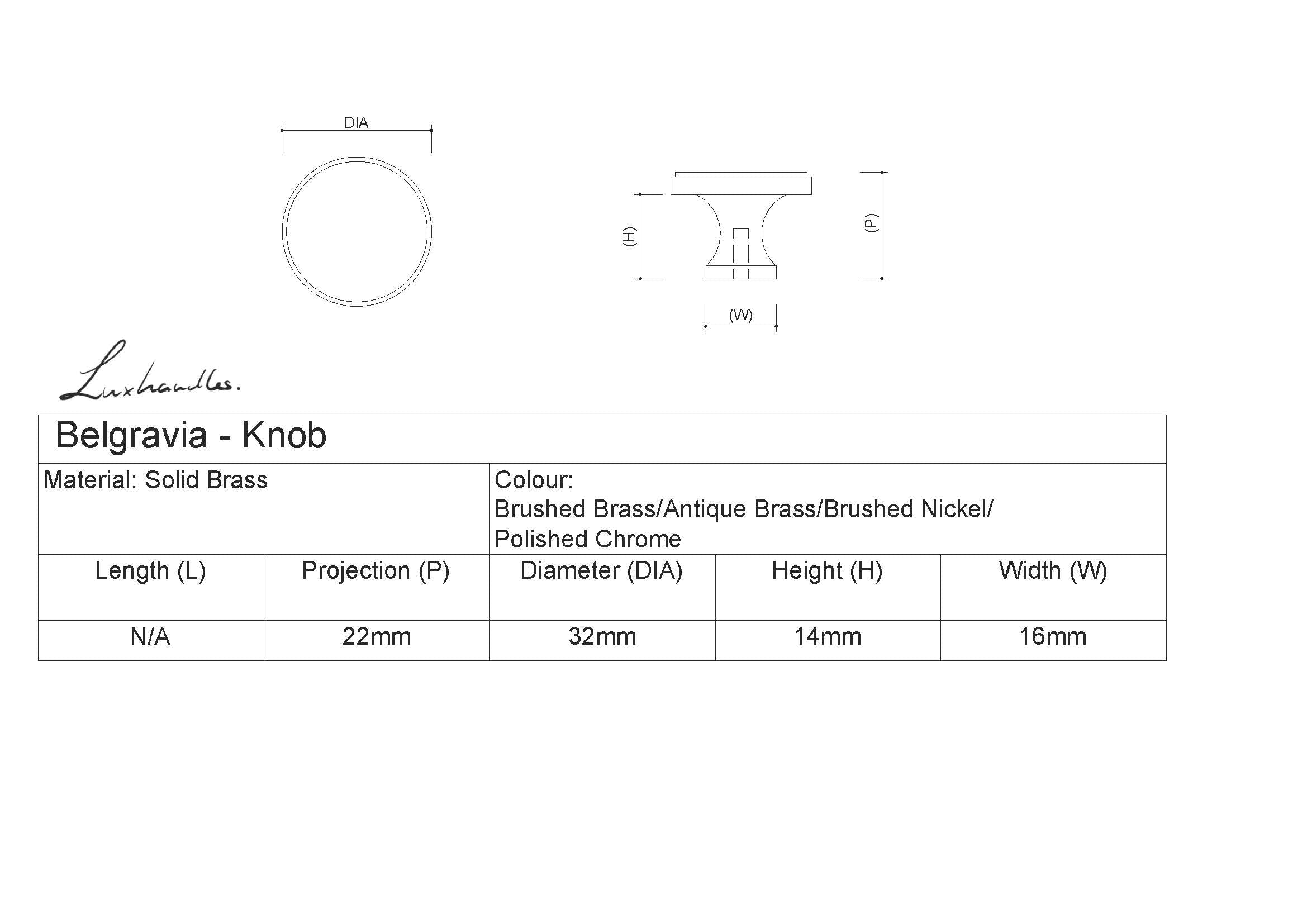 Introducing the "Belgravia Knob" from our Solid Brass Collection, where classic style meets enduring quality. Crafted from solid brushed brass, this knob boasts a sleek, polished finish that adds a touch of timeless elegance to any cabinet or drawer. Its round, smooth design ensures a comfortable grip and effortless opening, making it a practical and stylish upgrade for your kitchen or bathroom. With easy installation and included screws, the Belgravia Knob offers convenience without compromising on upscale aesthetics. Elevate your home decor with the luxurious flair of this exquisite brass knob, perfect for adding a refined touch to your cabinetry.