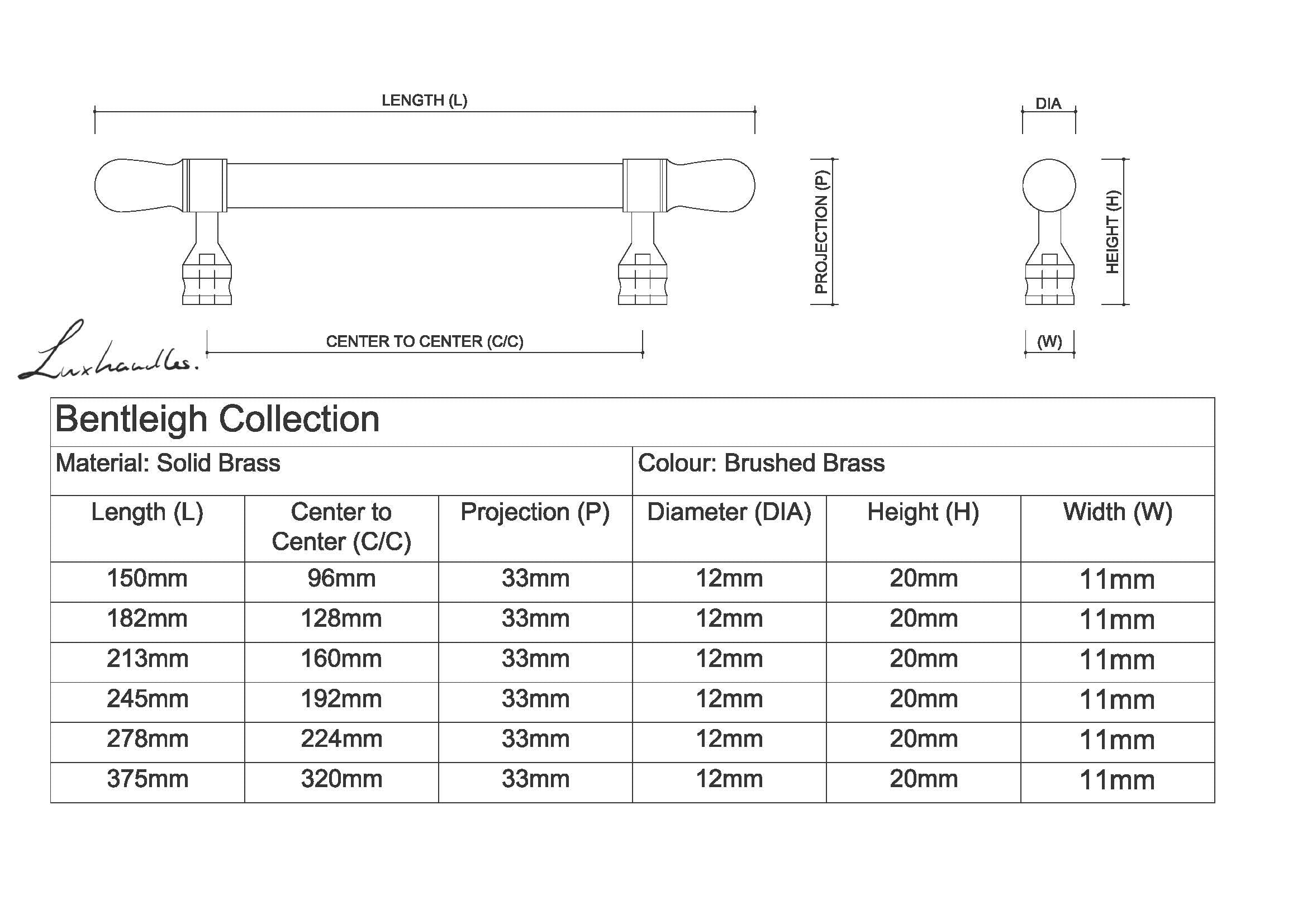 Discover the elegance of the "Bentleigh" Brass Bar Pull Handles from our Solid Brass Collection. Meticulously crafted for discerning tastes, these handles offer a perfect fusion of modern functionality and classic elegance. Their slender bar design with gracefully curved ends exudes sophistication, while the lustrous finish adds warmth to any kitchen or bathroom. Versatile and adaptable, these handles fit various cabinet styles and sizes, ensuring a seamless integration into your interior design. With straightforward installation, they provide a quick and effortless way to refresh your home. More than just hardware, the "Bentleigh" handles make a bold statement, elevating the aesthetic of your space with their stylish and durable brass construction. Update your home today with these timeless pull handles, harmonizing form and function effortlessly.