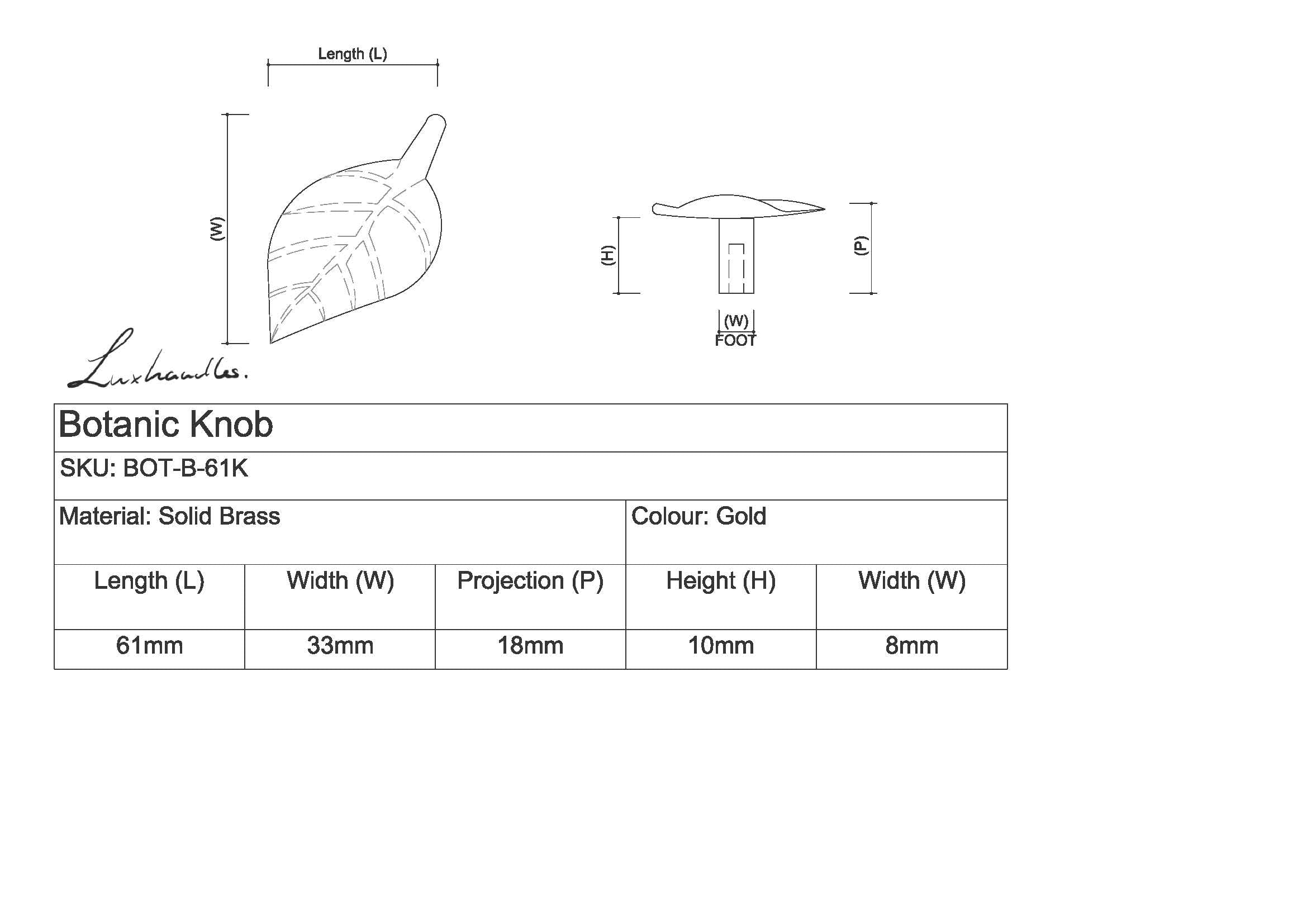 key features of Botanic Brass Knob