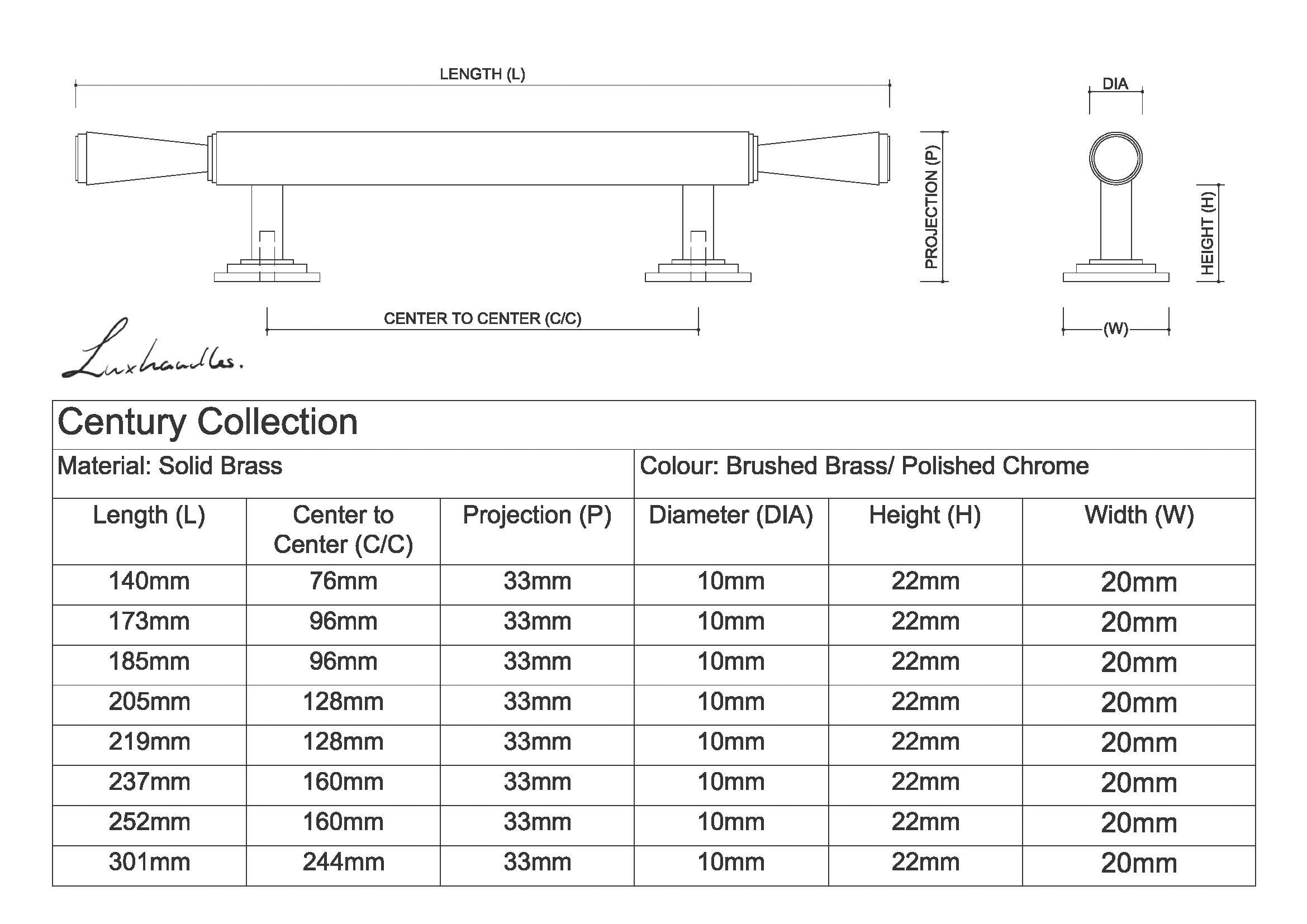 Upgrade your cabinets with our Century Solid Brass Handle, a hallmark of timeless craftsmanship and style. Made from premium solid brass, this handle offers both durability and elegance, making it an ideal choice for your doors, dressers, and cabinets. Its classic brass finish exudes sophistication, enhancing the aesthetic appeal of any room. Whether it's for your front door or dresser drawers, the Century handle adds a touch of refined luxury to your space. Explore our range of brass door handles to find the perfect complement for your home decor.