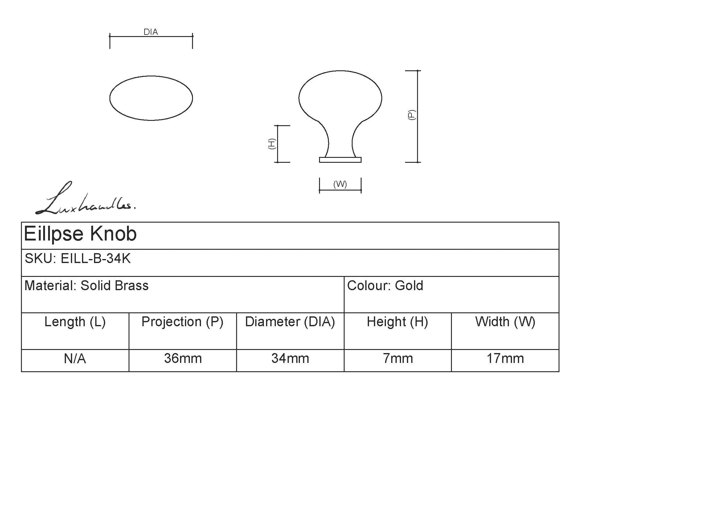 Ellipse Brass Knob