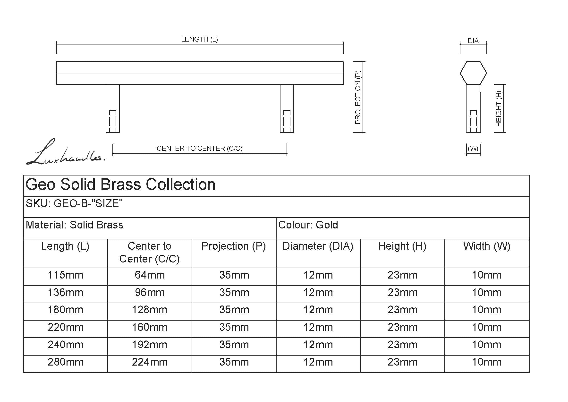 Each piece is crafted from premium brass, giving it a satisfying weight and a refined, tactile feel that sets it apart from ordinary hardware. The crisp geometry of the Geo design doesn’t just look incredible—it feels amazing in the hand, turning a simple daily gesture into a moment of quiet sophistication.
