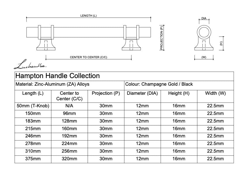 LuxHandles' drawer handles, are crafted from sturdy zinc-aluminum alloy, making them both durable and attractive. They’re available in various sizes, from compact 50mm knobs to longer handles ranging from 150mm to 375mm, ensuring a great fit for any drawer or cabinet.