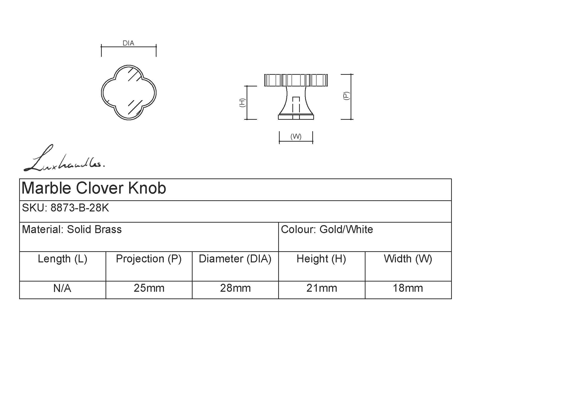 Material: Solid brass + resin top with marble finish