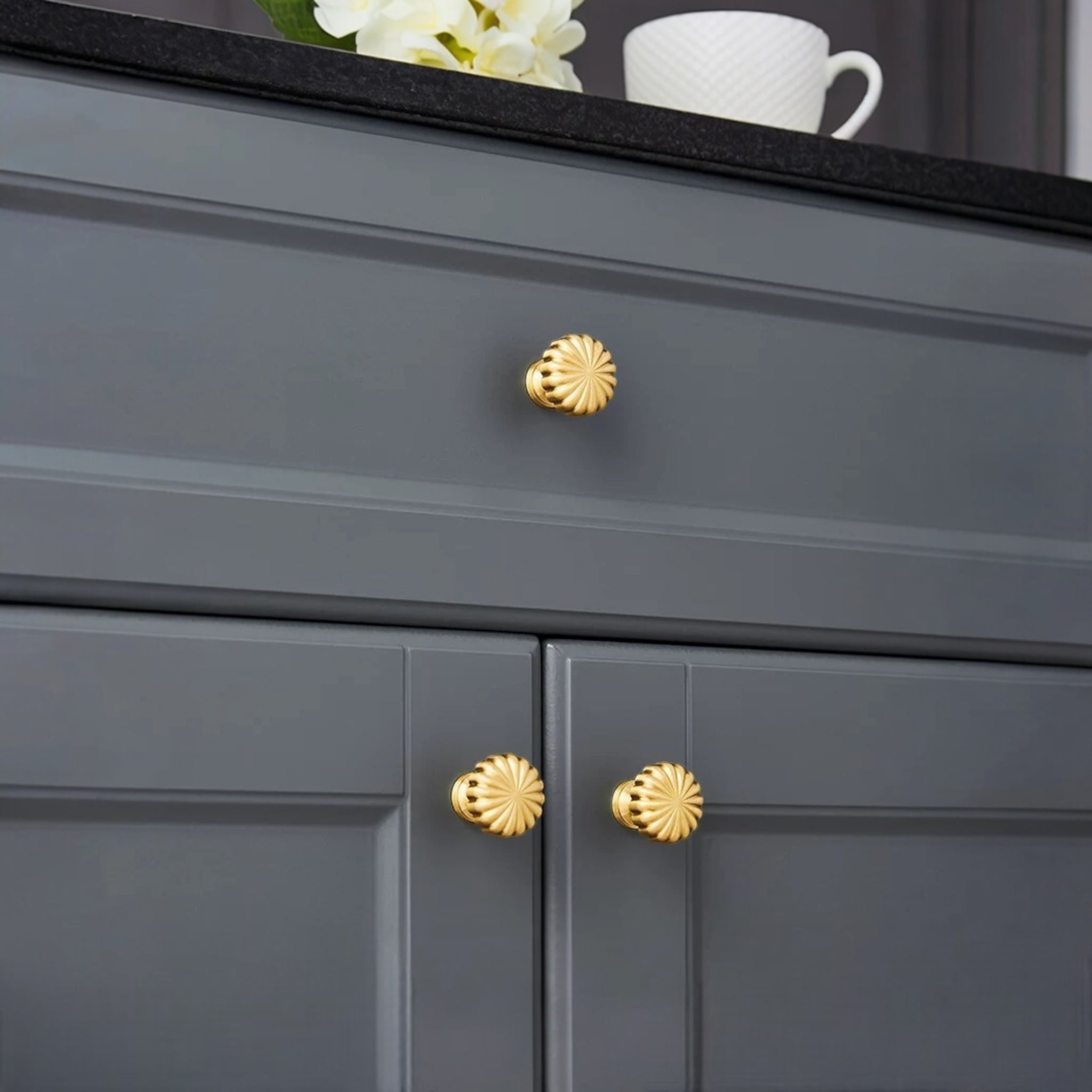 Crafted entirely from solid brass, the Sunray knob delivers exceptional strength and resistance to daily wear, ensuring it maintains its beauty over time. The rounded form provides a comfortable grip, allowing for smooth and effortless operation. This makes it an ideal choice for kitchens, bathrooms, wardrobes, and other high-use furniture pieces.